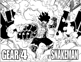 Primero el snake-man como lo mostraron en este capítulo fácilmente podemos analizar esta transformación a símpele vista es una versión más delgada del poudman aunque ya se llevaba especulando esta forma es mucho más veloz, algo que llamo la atención en una viñeta esta transformación a primera estancia era más alta que katakuri pero al avanzar la lucha se puede observar que luego se igualan los tamaños esto quizás puede ser debido al agujero en el estomago de luffy,como deben saber luffy ha abusado de su haki de armadura activando su gear fourth con todo el desgaste físico que ha tenido a lo largo del combate no seria una sorpresa que su haki se esté debilitando por el uso excesivo y como se necesita si o si tener activado el haki de armadura para que el gear fouth se mantenga a medida que avance el combate puede ser que a luffy se le complique mantener esta forma, el snake-man tal parece que utiliza mas haki que su otras dos trasformaciones debido a que al atacar más rápido y cambiar de dirección sus brazos en medio de un ataque le lleva usar mas haki estando en esta forma para mantener su elasticidad y esta no regresa a la normalidad.