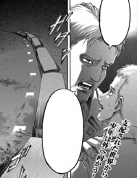 Este guerrero eldiano actualmente corre peligro de transformarse en titán si Zeke llega a gritar estando cerca de él, así como una gran cantidad de soldados que también bebieron aquel vino contaminado.