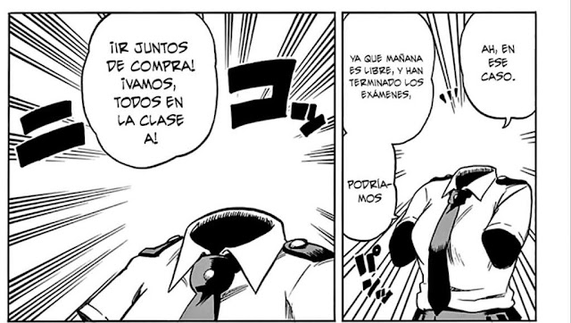 Otra de las razones por las que se dice que Toru es la traidora es porque quien sugirió ir al centro comercial fue ella ¿Recuerdan esta escena? allí se encontraban Mineta, Iida, Kirishima, Uraraka, Tokoyami , Mina y Deku y por casualidad de la vida, mala suerte de este último, Shigaraki se encuentra con él cuando se queda solo.